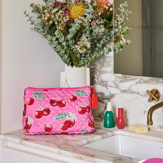 Cherry Blossom Quilted Cotton Toiletry Case-Kip & Co
