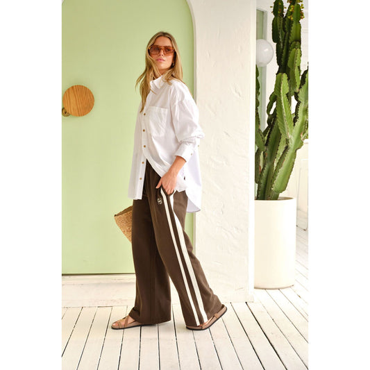Gigi Wide Leg Terry Trackpant - Chocolate