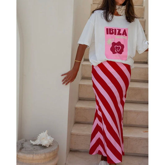 Sold outZIGGY STRIPE SKIRT-PINK & RED