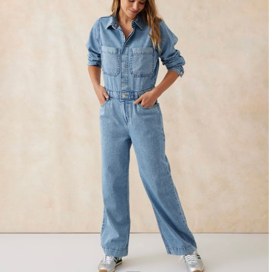 Long Sleeve Soft Denim Jumpsuit- Vintage Blue- Ceres Life