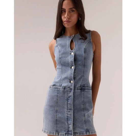 ETCH DENIM MINI DRESS - HERITAGE BLUE