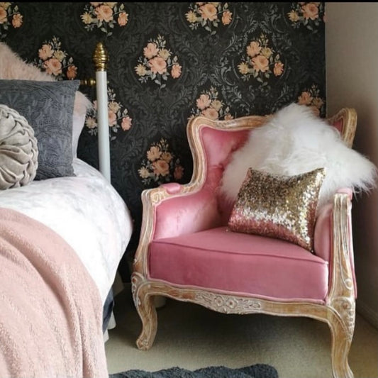 Louis Armchair Teak Frame / Rose Turkish Velvet