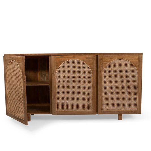 Sold outTeak & Rattan Arch Sideboard