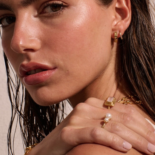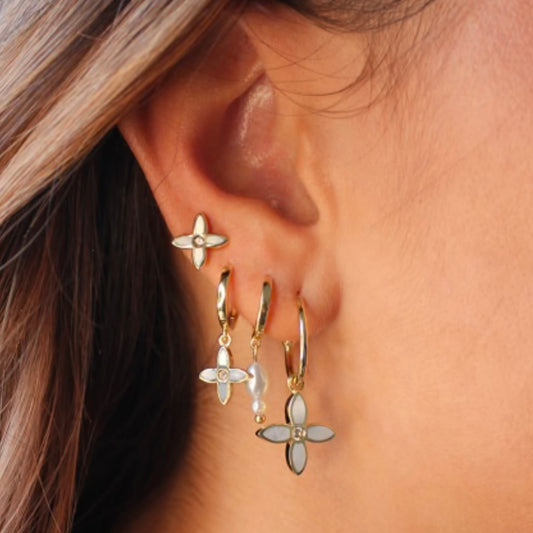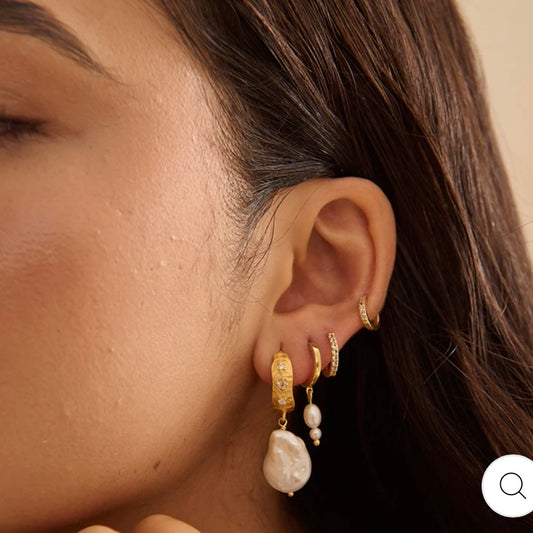 Cosmic Love Medium Earrings with Pearls in 18KT Yellow Gold Plate