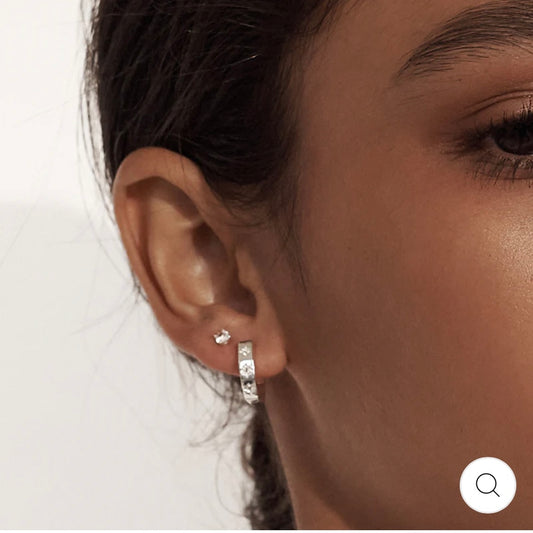 OCTAGONAL HUGGIES WITH WHITE TOPAZ STERLING SILVER