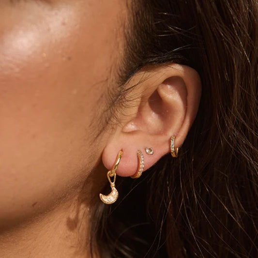 Octagonal Huggies - White Topaz in 18KT Yellow Gold Plate