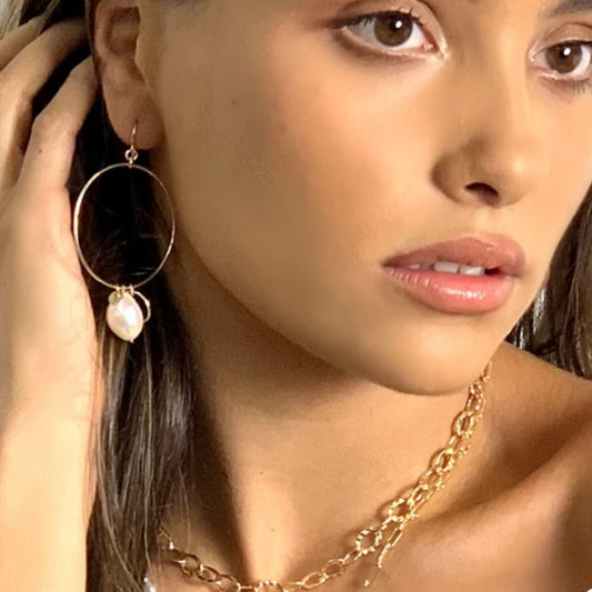 Misuzi Pearl and Tag Mis-matched Hoop Earrings - Gold