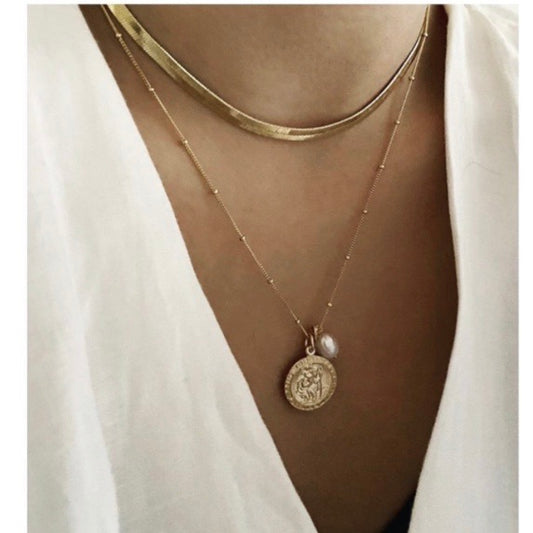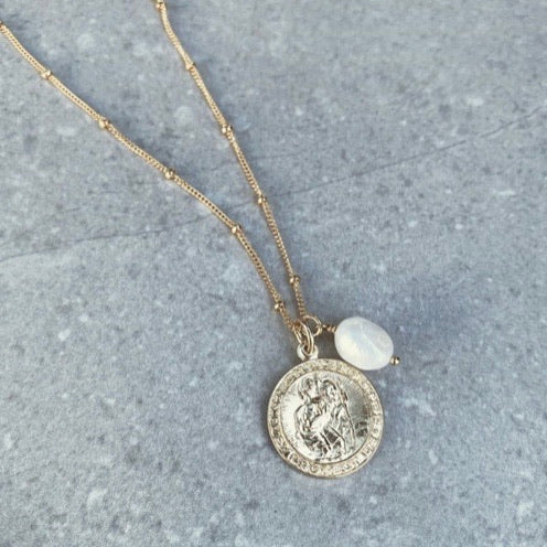 Misuzi Jada St Christopher and Pearl necklace - Gold