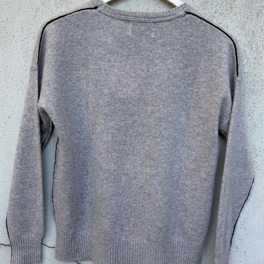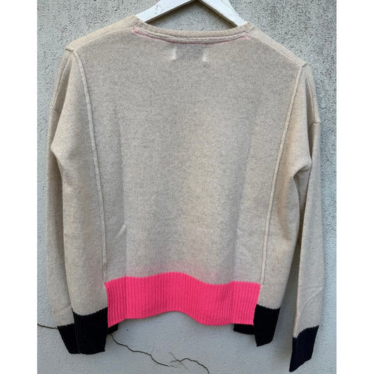 100% Cashmere – Step Hem Knit – Oatmeal / Pink & Navy
