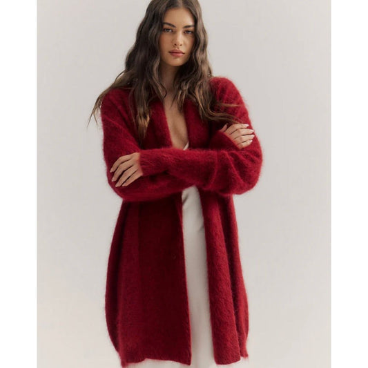Sold outSOPHIA OPEN CASHMERE CARDIGAN-MERLOT