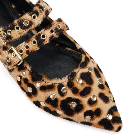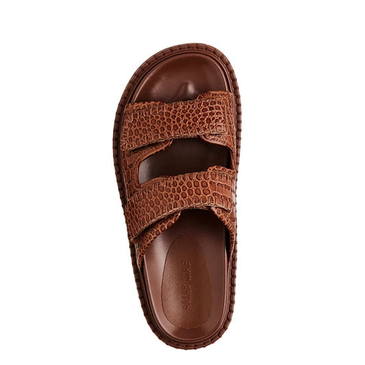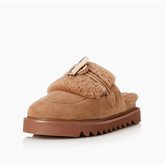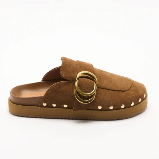 Clover Leather Studded Chocolate Suede/Brass Slides
