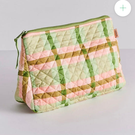PISTACHIO TARTAN QUILTED COTTON TOILETRY PURSE