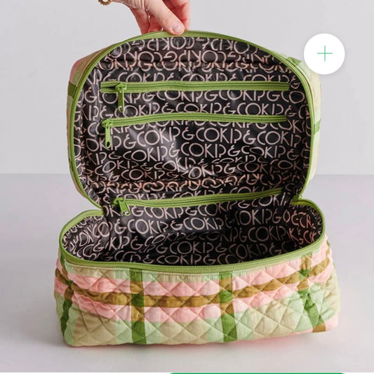 PISTACHIO TARTAN QUILTED COTTON TOILETRY CASE