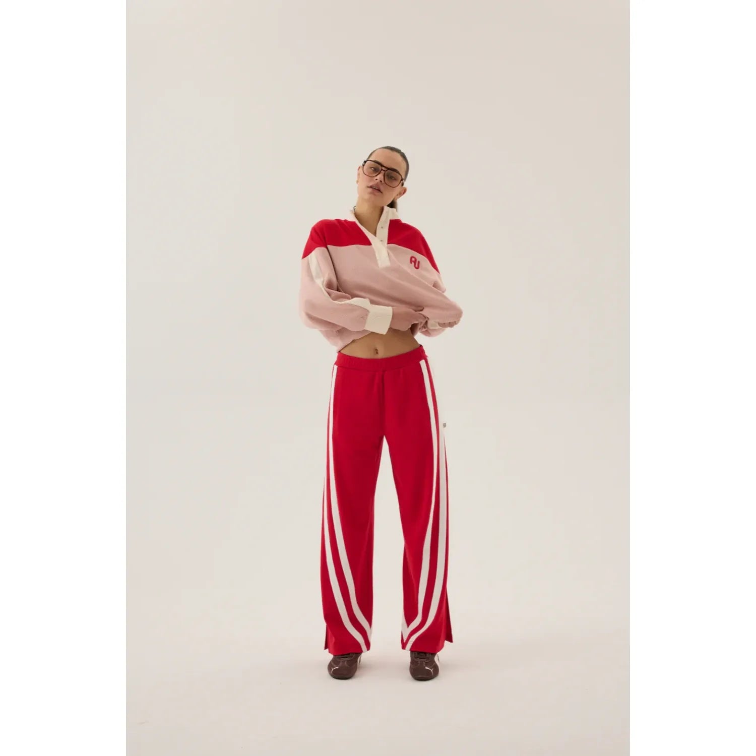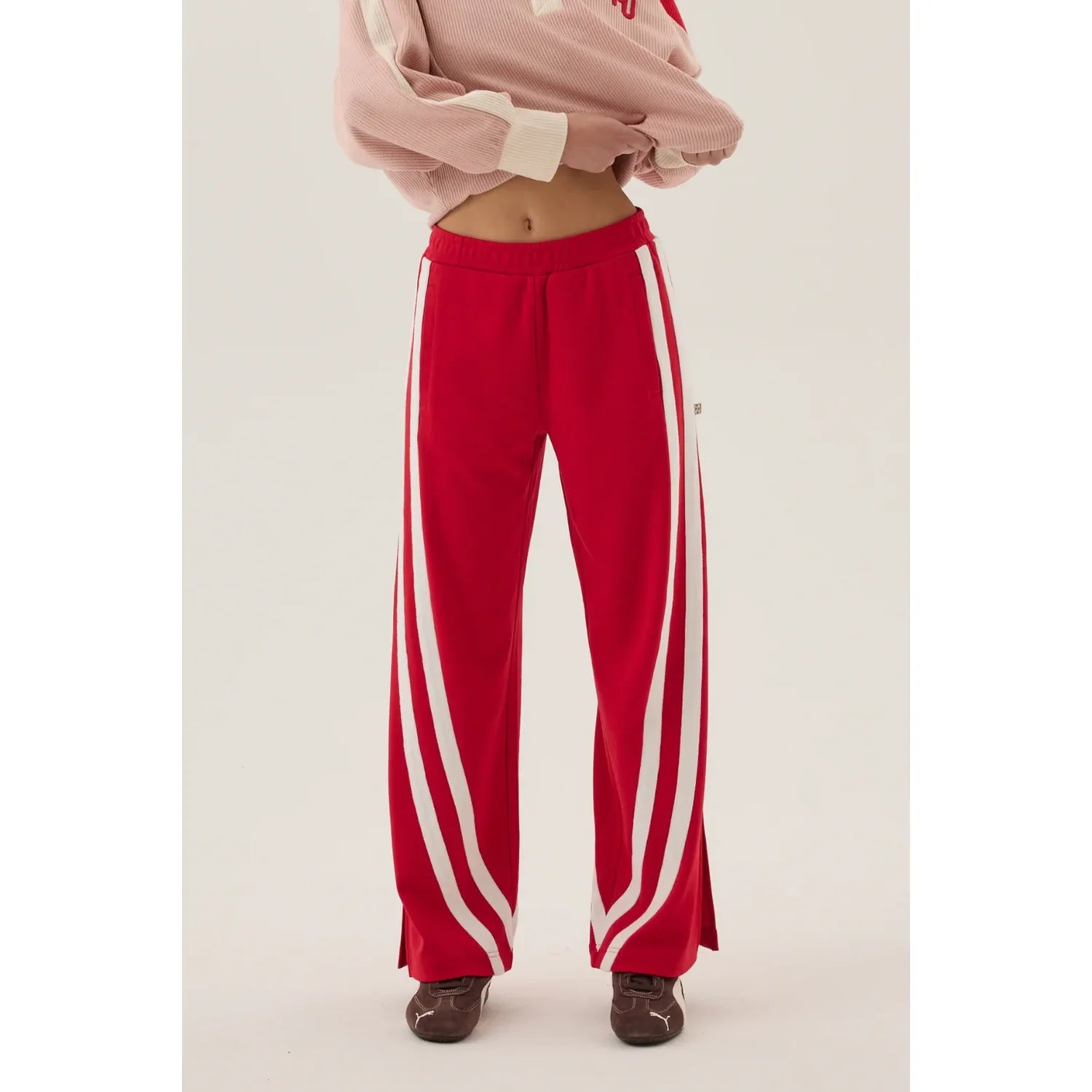 The 1996 Trackside Pant in Poppy Red is the wider-leg casual pant you've been looking for. Cut in a luxe sports sheen fabric, this style features side pockets, contrasting trims that elongate the leg, and side split detail at the ankle. With an elasticised waistband, this trackpant is both flattering and comfortable. Pair yours with the AJ Vintage Knit Sweatshirt Soft Blush for a relaxed everyday look.