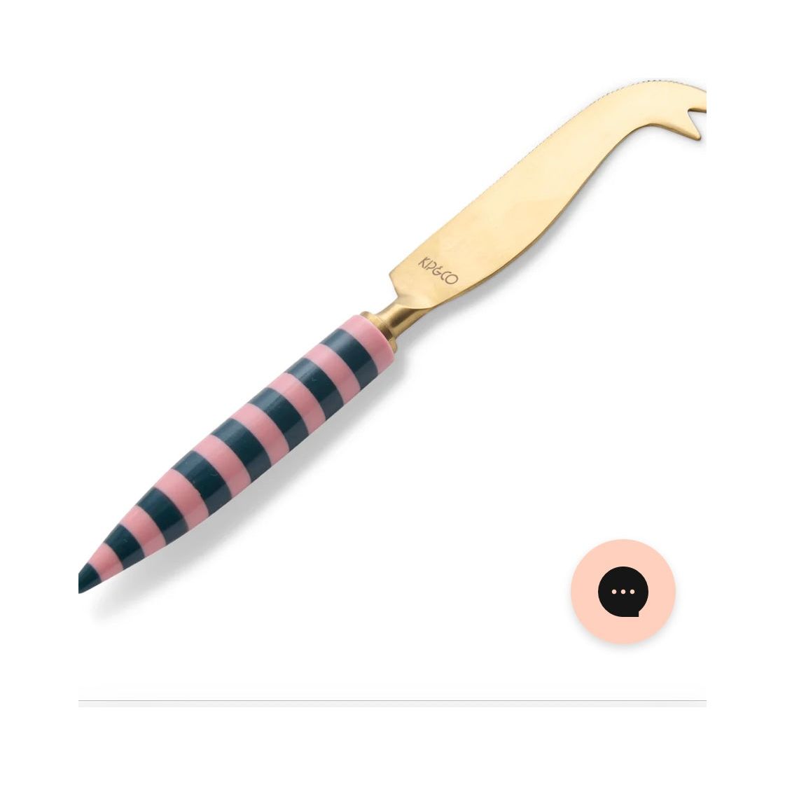 Make your cheese boards and charcuterie platters a standout with our Florence Stripe Brasserie Cheese Knife. Practical and pretty this cheese knife is made from brass coated stainless steel with hand crafted resin handle in a pink and green horizontal stripe. The perfect gift for cheese enthusiasts!