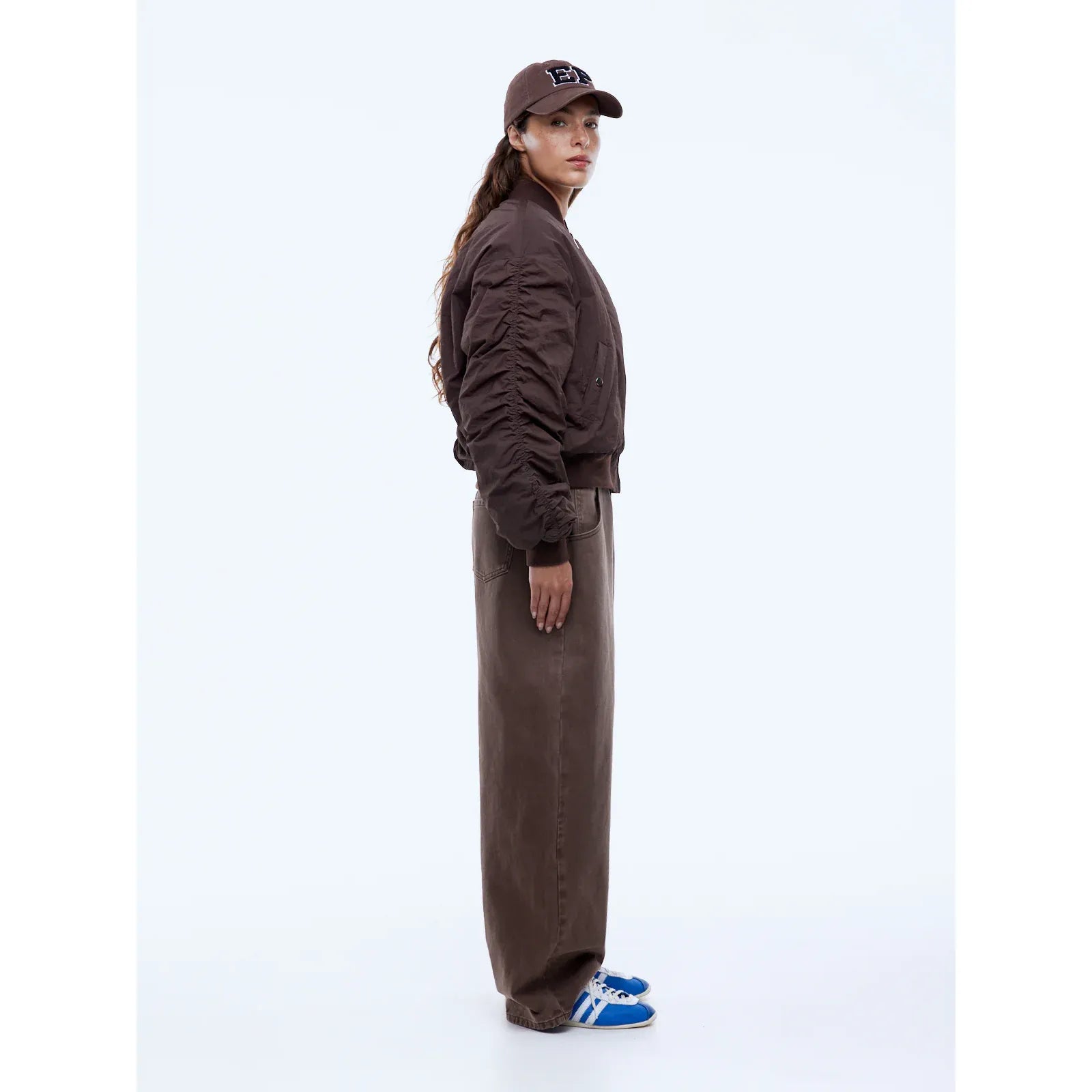 The Lulu Bomber is crafted in lightweight nylon, cut to a relaxed puffer silhouette with dropped shoulders and finished in mocha for easy everyday wear. Designed with a fully lined, quilted build, ribbed collar, cuffs and hem, plus angled front pockets with press-stud closure, this customer-favourite returns in a fresh colourway with confident, street-ready appeal.
