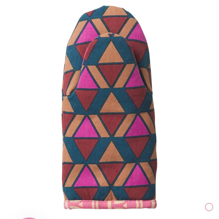 “A stylish geometric print brings retro charm to mealtime preparations. This practical kitchen accessory keeps your hands safe while you bake, allowing you to focus on the wonderful act of creation.” – Phoebe’s Style Notes