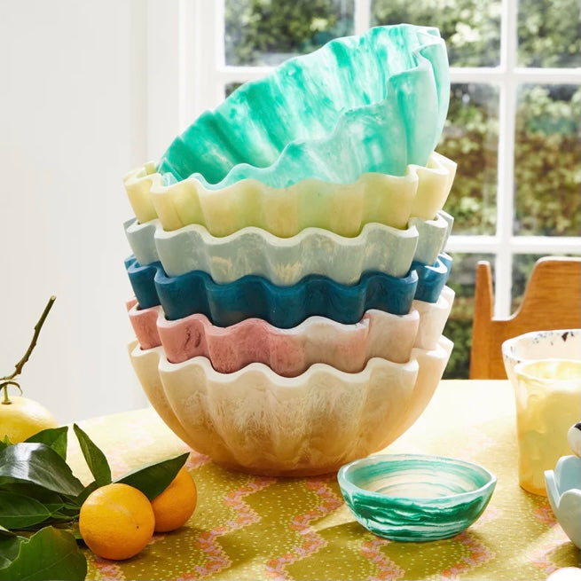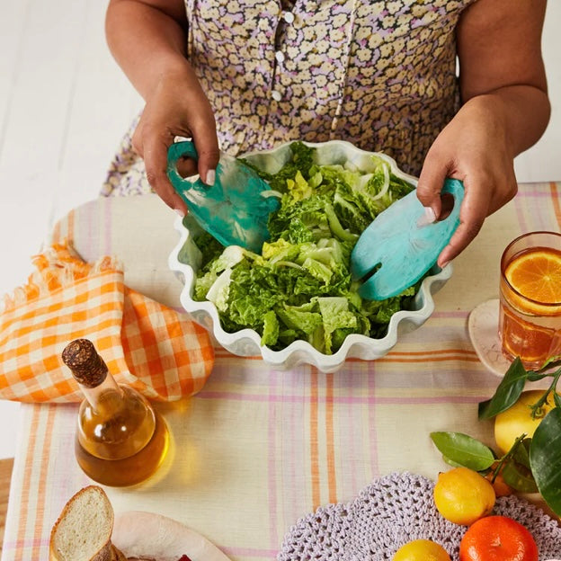“Whether you’re entertaining or just enjoying daily dinners with the family, our resin tableware makes every meal an experience to remember. The Venus Bowl makes for the perfect elevated fruit bowl or a show-stopping centrepiece at dinner parties, particularly when filled with a delicious salad and paired with our Inez Servers. Our stunning Cloud colourway swirls together pale blue and creamy hues for a deliciously tranquil finish.” – Phoebe’s Style Notes